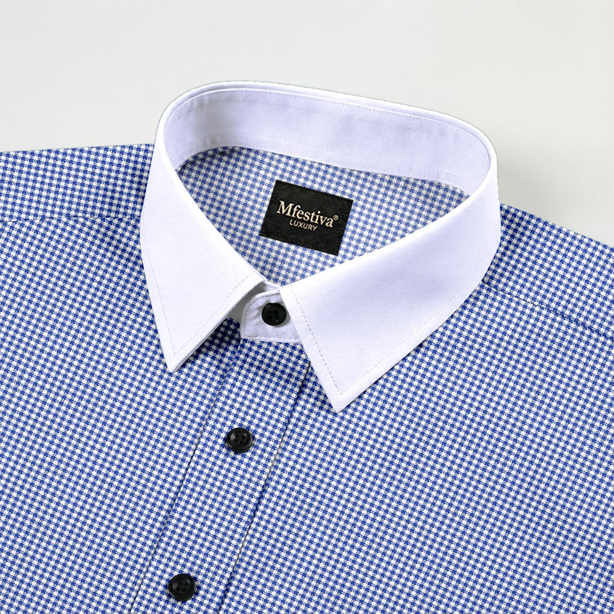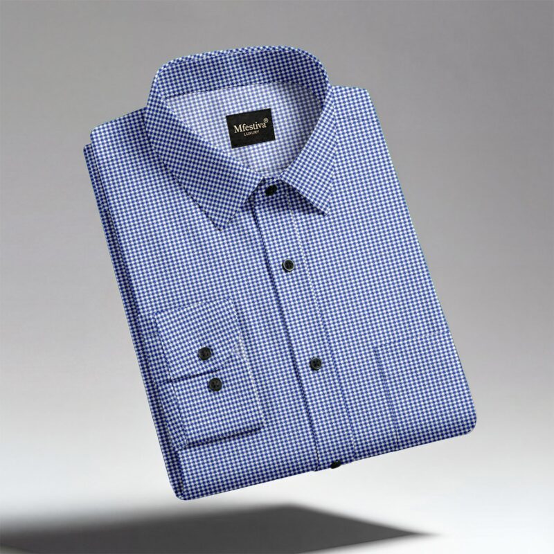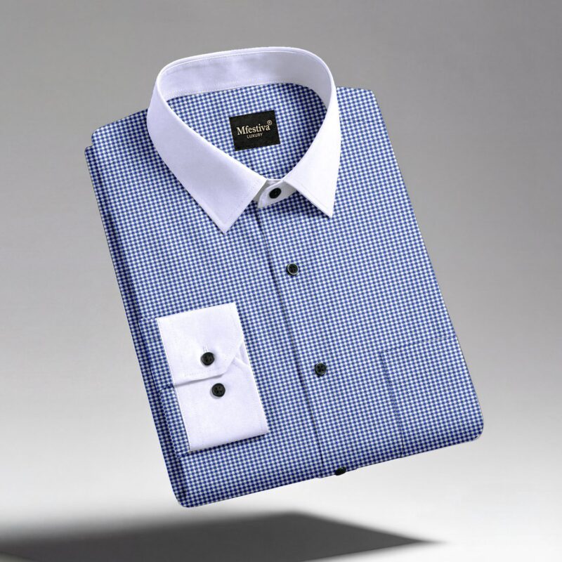 Blue Color Premium Cotton Slim Fit Checkered Casual Shirt