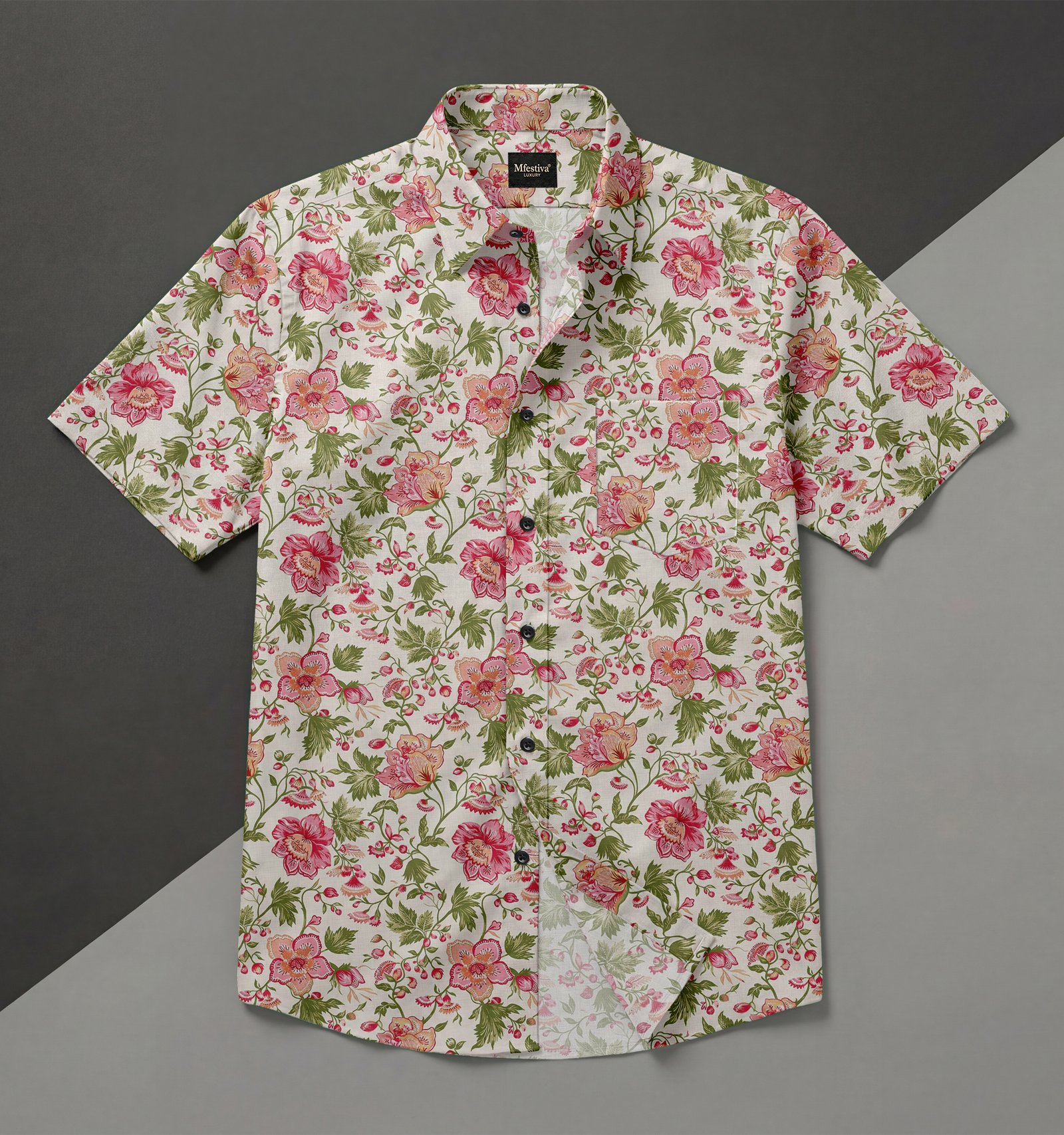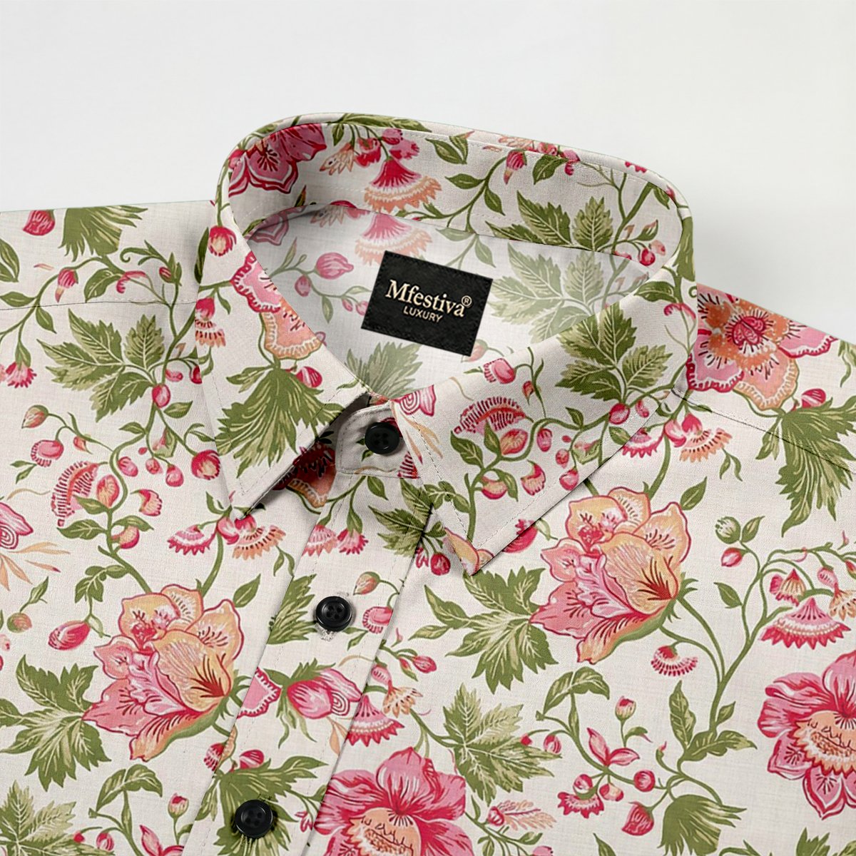 White Color Flower Digital Print Shirt