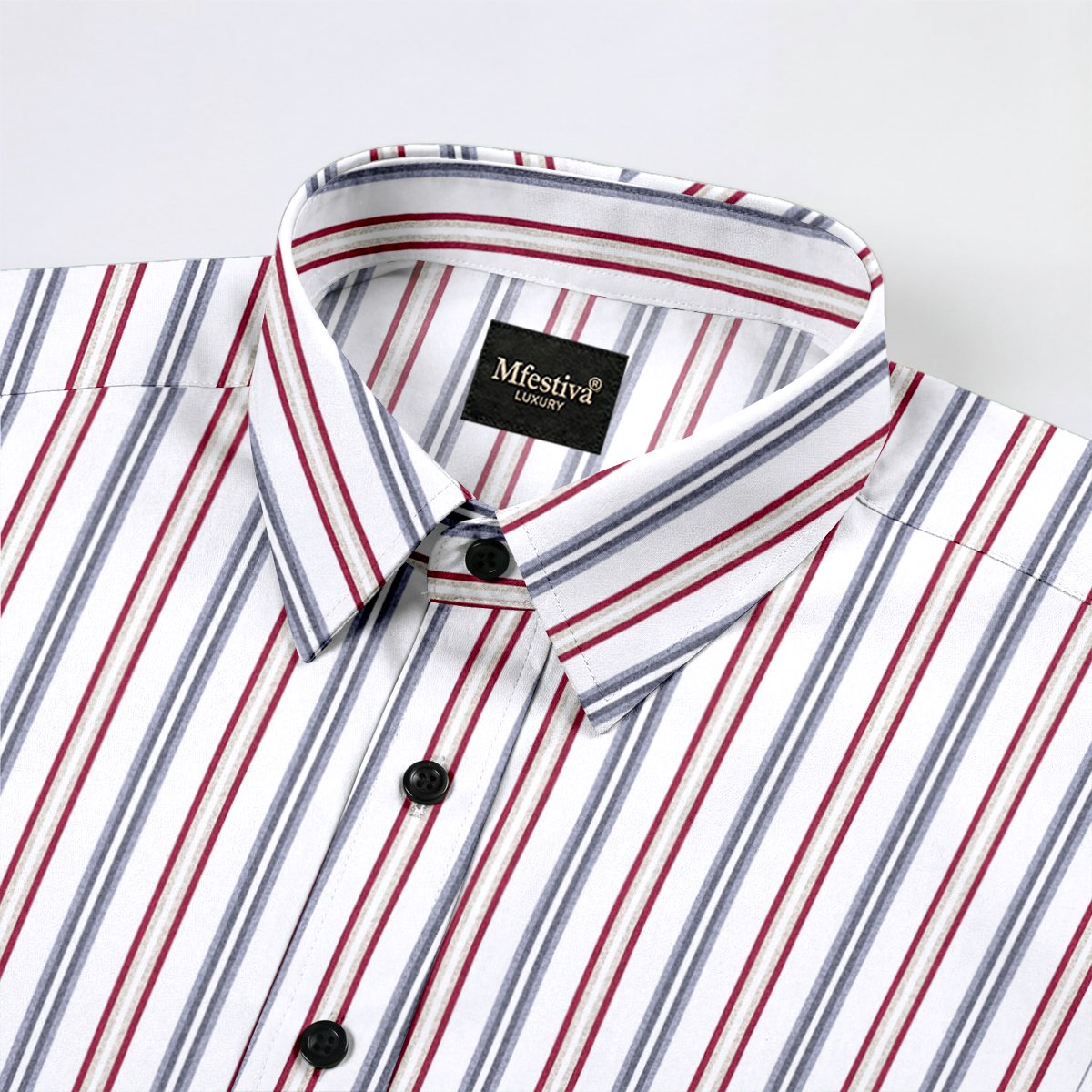 White Color With Red and Gray Color Line Print Cotton Shirt